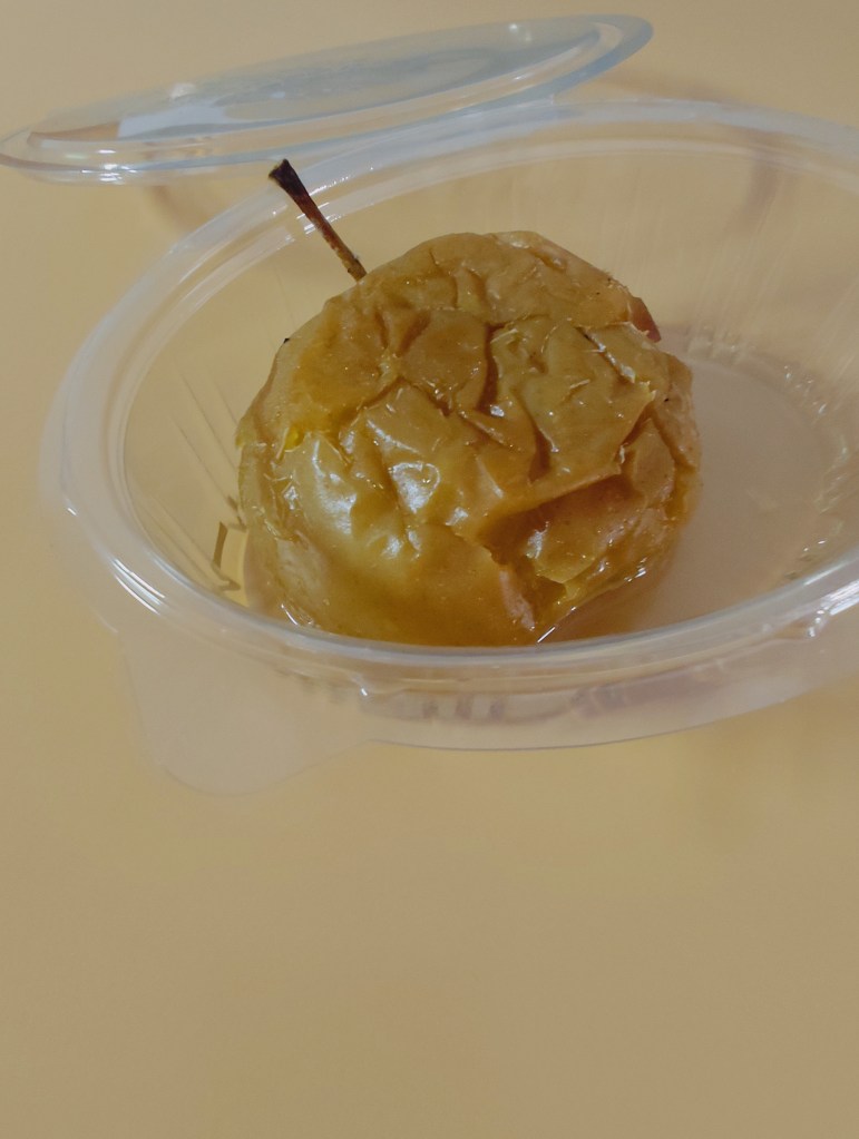 Il percorso si chiude con della pomme au four scioglievolissima e davvero molto dolce, qualità che ha spinto lo chef a servirne solo mezza per evitare quella sensazione di stucchevole che ne avrebbe rovinato l’effetto WOW.